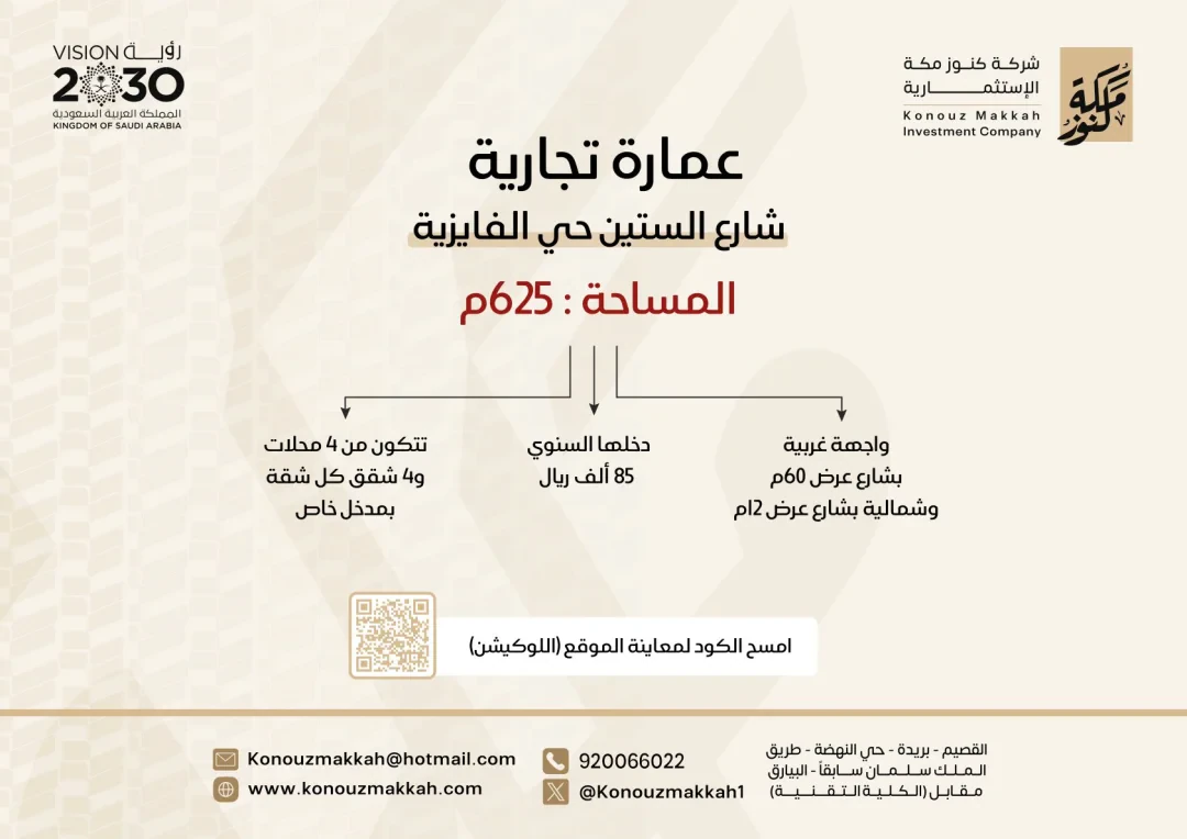 صور الوحدة | عمارة للبيع في حي الفايزية | شركة كنوز مكة الاستثمارية/ العروض والطلبات العقارية