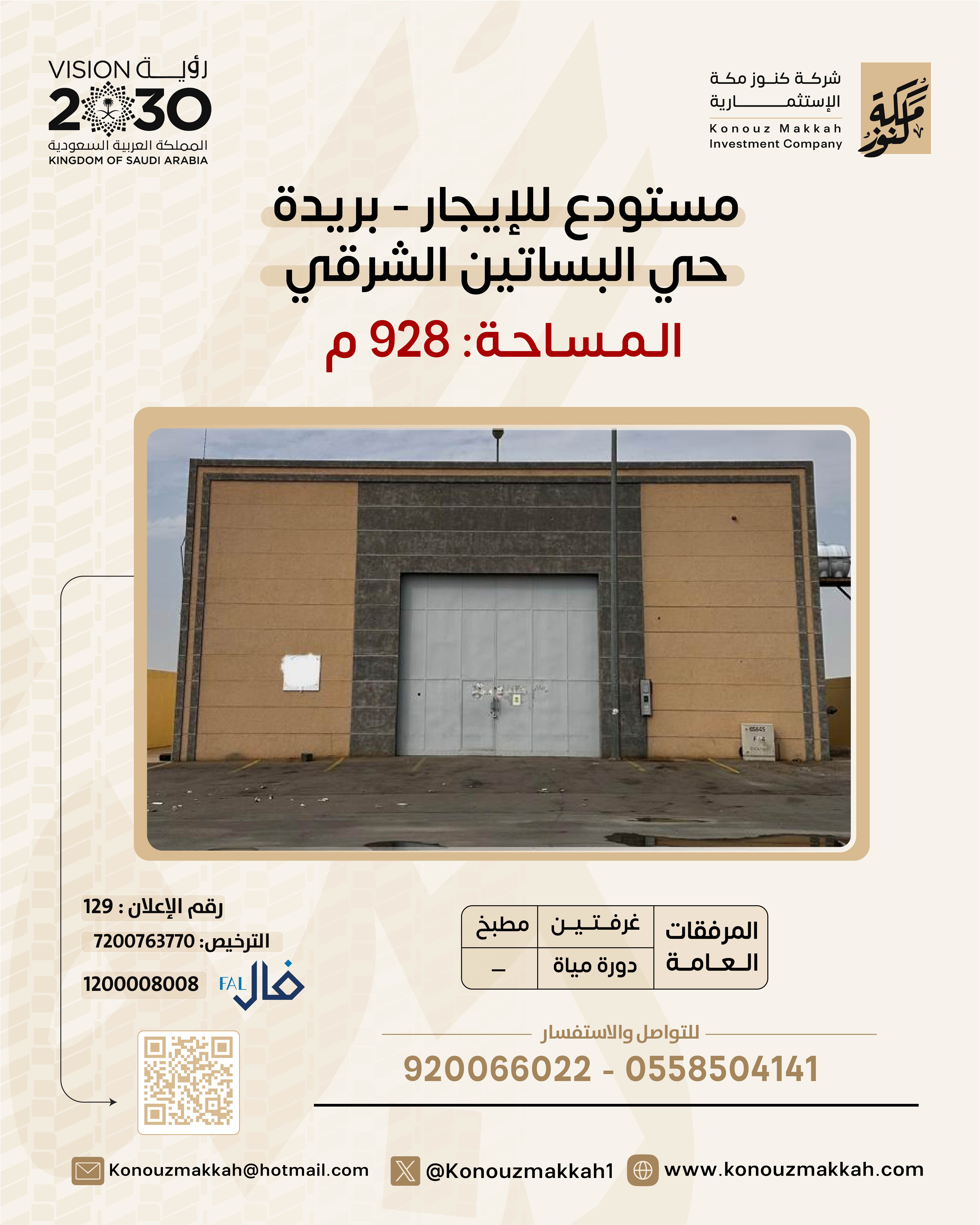 صور الوحدة | مخزن للإيجار في حي البساتين | شركة كنوز مكة الاستثمارية/ العروض والطلبات العقارية
