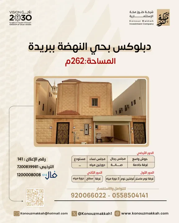 طلب اتصال | دبلكس للبيع في حي النهضة | شركة كنوز مكة الاستثمارية/ العروض والطلبات العقارية