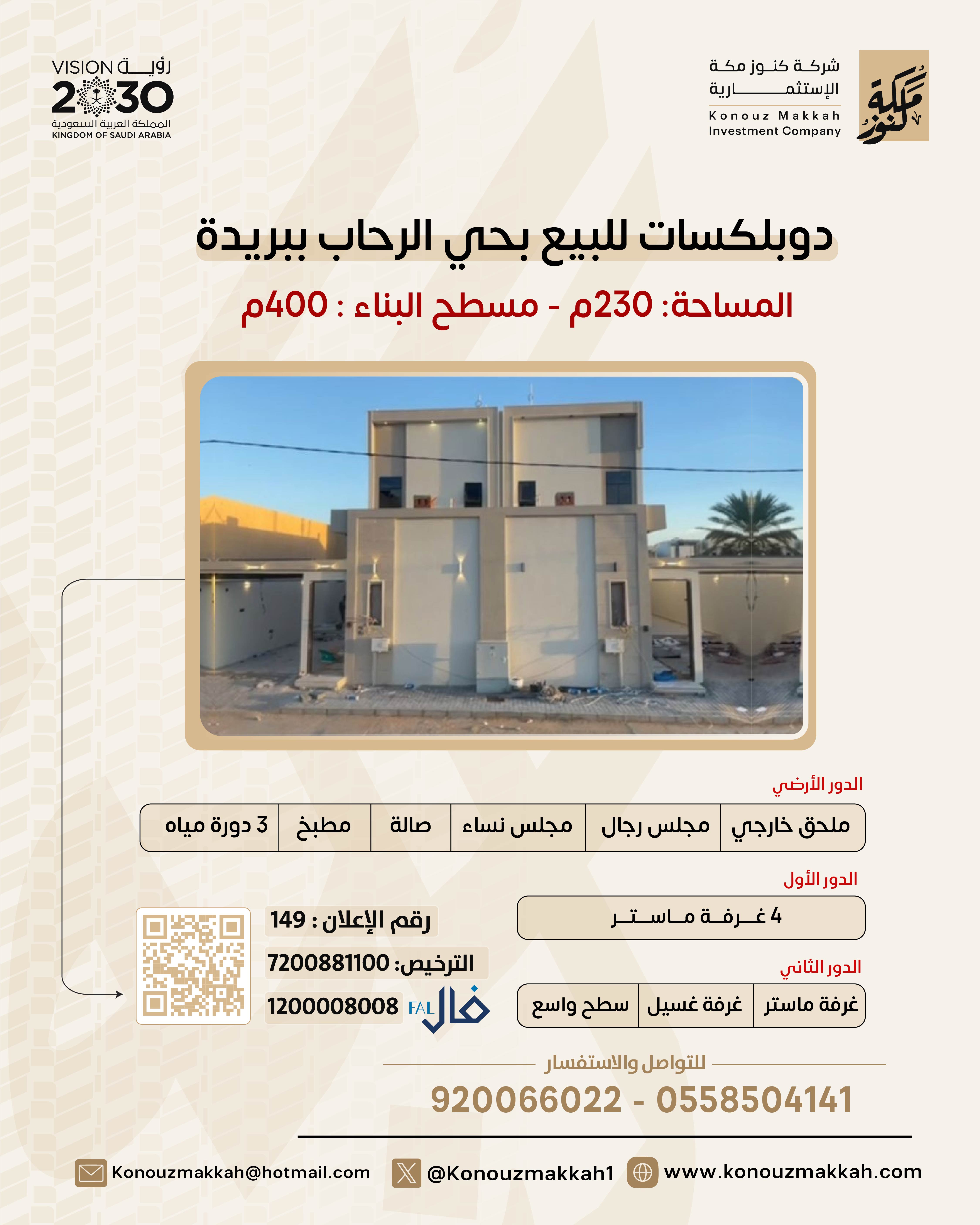 صور الوحدة | دبلكس للبيع في حي الرحاب | شركة كنوز مكة الاستثمارية/ العروض والطلبات العقارية